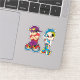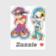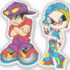 Urban Cartoon Duo Tee. A vibrant cartoon tee featuring a bold street-style boy and a colorful retro-fashion girl standing side by side. red, blue, green, pink, purple, yellow, orange, heart, rose, butterfly, floral, romance, love, ribbon, spring