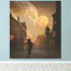 A surreal urban landscape where celestial bodies dominate the twilight sky. A silhouette of a woman in mid-dance graces the bustling city street, her form juxtaposed against the ethereal backdrop of giant planets hovering above. A blend of everyday city life with the extraordinary vastness of the cosmos.