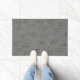 Numerous overlapping rectangles of various sizes are arranged in an abstract pattern over a greyish background. Some rectangles appear to be solid colors of olive or black while others are only outlines, creating a sense of depth and complexity.