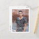The modern photo graduation thank you postcard features a bold outline font overlay, white border, and placeholders for custom text and a photo.