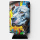 Colourful digital art with a Pitbulls sitting on a city street surrounded by graffiti street art.