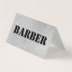 Modern, urban, minimalist, hipster... "BARBER" in stencil style bold black font on grey textured background. Use back for stylist's / barbershop details. Inside can be used for price list, loyalty stamps etc.