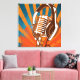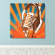 Blue and orange background, urban and grunge style. Older style microphone with earphones over top.