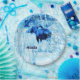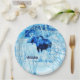 A blue and white image of a cow moose in an urban setting during winter. Customisable text reading "Alaska" also appears. Moose are year-round residents in many Alaskan communities. Here in Anchorage there are about 1500 animals, along with wolves, brown bears and other wildlife.They are usually well-behaved. They often cross streets at the crosswalks after waiting for a walk signal.