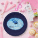A blue and white image of a cow moose in an urban setting during winter. Customisable text reading "Alaska" also appears. Moose are year-round residents in many Alaskan communities. Here in Anchorage there are about 1500 animals, along with wolves, brown bears and other wildlife.They are usually well-behaved. They often cross streets at the crosswalks after waiting for a walk signal.