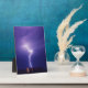 Witness a moment of pure, unadulterated power in this breathtaking vertical photograph. A massive, brilliant bolt of lightning descends from the heavens, seemingly targeting a single building in the city below. The entire scene is drenched in a moody, electric palette of deep indigo and vibrant purple, highlighting the raw energy of the storm. This is nature's ultimate power surge, a dramatic and awe-inspiring spectacle that freezes a split-second of raw energy in time.
