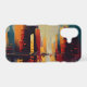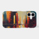 This dynamic abstract artwork captures the energy and rhythm of a modern city through towering vertical forms and bold architectural silhouettes. Warm tones of amber, rust, and deep red rise alongside cool blues and charcoal grays, creating a powerful contrast that evokes skyscrapers bathed in shifting light. Dripping paint and textured brushstrokes add a sense of motion, as if the city itself is breathing, pulsing, and constantly evolving.