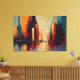 This dynamic abstract artwork captures the energy and rhythm of a modern city through towering vertical forms and bold architectural silhouettes. Warm tones of amber, rust, and deep red rise alongside cool blues and charcoal greys, creating a powerful contrast that evokes skyscrapers bathed in shifting light. Dripping paint and textured brushstrokes add a sense of motion, as if the city itself is breathing, pulsing, and constantly evolving.