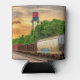 A can cooler featuring a beautiful evening sunset behind an old water tower and train in downtown Rogers Arkansas, United States.