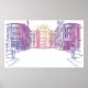 An urban street illustration with city buildings at the end. This design looks really effective on these Poster