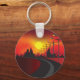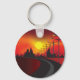 Carry a piece of the city with you on this stylish keychain featuring a vibrant urban skyline. The minimalist cityscape and sunset highway graphic captures a modern vector look with deep red dusk tones and a golden hour sun. It is a perfect accessory for those who appreciate travel vibes and the artistic flair of a retro silhouette on their daily night drive.
