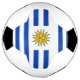 The national flag of Uruguay (Spanish: Pabellón Nacional) is one of the three official flags of Uruguay along with the flag of Artigas and the flag of the Treinta y Tres. It has a field of nine equal horizontal stripes alternating white and blue. The canton is white, charged with the Sun of May, from which 16 rays extend, alternating between triangular and wavy. The flag was first adopted by law on December 16, 1828, and had 19 stripes until July 11, 1830, when a new law reduced the number of stripes to nine.