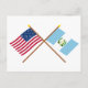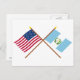 The gently waving flags of the United States and your "other" favourite place on crossed poles are an excellent way to display your affections or affiliations. Whether your current or ancestral home, someplace you have visited or would like to visit, or just because you like that flag, this postcard is for you!