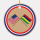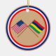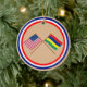 US and Mauritius Crossed Flags Ceramic Tree Decoration