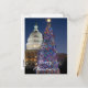 Evening photograph of the 2012 US Captiol Christmas tree with lights and star lit up.