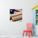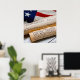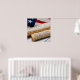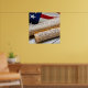 Copies of the Declaration of Independence and US Constitution in rolled up scrolls with a vintage American flag