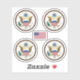 Four Custom-cut vinyl stickers with the seal of United States of America (USA), with a bald eagle and an American flag; and one sticker with the American flag