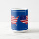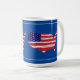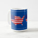 A map of the USA filled with Flag colours on a blue background. Distinctive.