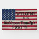 US Patriotic American Flag on a simulated linen fabric with stars and stripes, red white and blue colours, and text. The calligraphic text is customisable.