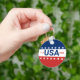 Celebrating the USA's 250th anniversary. This red, white, and blue keychain has the word 'USA' in the center. The years 1776 and 2026 are next to USA. The top stripe is blue and has white stars. The center stripe is white. The bottom stripe is red with white stars.