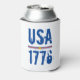 USA and 1776 in a unique font is printed in blue on this white can cooler and highlighted with red and blue stripes and a gold star. MATCHING items in our store.