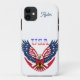 USA American Eagle Customisable iPhone 11 Case. Introducing our USA Eagle iPhone 11 case, a perfect blend of patriotism and protection. This Apple iPhone 11 protective case showcases a majestic American Eagle adorned with the stars, stripes, and vibrant colours of the American Flag. Above the eagle, the letters USA proudly stand, symbolising your love for the United States. But that's not all! This customisable cover allows you to personalise it with your name or the name of a special someone, making it a unique and meaningful gift. Show off your American pride while keeping your iPhone 11 safe and stylish with our USA Eagle case.