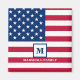 God Bless America. The Land Of The Free. This red, white and blue American flag design can be given as a gift for a 4th of July party, Independence Day celebrations, military graduation, police retirement, family reunion, Memorial Day event, company picnic, wedding, beach house, backyard barbecue or any occasion. The patriotic USA flag monogram design can be personalised with the initial and name of the family, company or retired employee. The design is yours to customise as you wish.