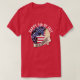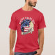 Patriotic USA American Flag Family 4th OF JULY God Bless America T-shirt in RED with CUSTOMIZABLE TEXT, designed in the shape of a raised power fist against the backdrop of a wavy Stars and Stripes flag. There is a banner that reads GOD BLESS AMERICA, and curved text at the top, the wording reads HAPPY 4TH OF JULY. This curved text is CUSTOMIZABLE, so you can edit this greeting as required (or delete). Underneath add your family or team name. This patriotic American T-shirt would be an ideal gift for the American Independence Day Weekend celebrations or for any national holiday or special event after customisation. Choose from a wide selection of patriotic American designs on clothing, home decor, cards and gifts, designed by Berean Designs. Other colours and matching gifts available.