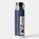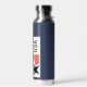 USA navy blue water bottle featuring a modern stars and stripes design. Patriotic. Custom text. Change the text on the water bottle or leave as is. Use the template to create your own USA water bottle.