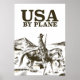 USA Cowboy on a horse Travel poster in a hand drawn vintage style.