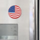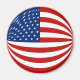 The flag of USA has been carefully fitted to the circular form of this magnet. A decorative way to promote American culture.