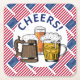 Patriotic STARS & STRIPES coasters showing flag of the UNITED STATES OF AMERICA in the background, with three beers and CHEERS! Ideal for private parties, public celebrations, beer festivals, etc. Matching items are available in the USA Collection by Berean Designs.