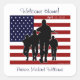 Beautiful patriotic American flag with a soldier silhouette, welcome home personalised name and date stickers. Sticker design features a large American flag on a white background with a silhouette in front of soldiers, The main colours are red, white, blue and black. The sticker reads, 'Welcome Home!' on top and on the bottom is a template are ready for you to add the title and name of your military soldier. And finally an area on top to add your homecoming date, or party date. Note: if you need more space to fit your title/name please click on 'customise' and you may decrease or increase the font size, change colour or select a new font as well. This sticker is a great addition to any sticker collection and a wonderful accessory for a military homecoming party, for party favours. It is available in different sizes and shapes. Please visit our store for other patriotic homecoming, retirement, gifts, shirts, and greeting cards, in different, styles, designs and colours.