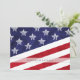 This patriotic greeting card to congratulate a new United States citizen features a creative representation of the American flag set at an angle across the front of the card with white stars on blue and red and white stripes - all text is customisable - by katz_d_zynes