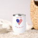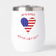 Personalised thermal wine tumbler designed to share your love of all things American. Design shows a heart-shaped flag of the red, white, and blue flag of the United States of America. Above is a spot for your name (or someone else's, if this is a gift), below a place to write an occasion (birthday, Valentine's Day, Independence Day, etc.) and year. Enjoy your cookout or barbeque while honouring your love of your heritage. Great housewarming gift. Terrific for family reunions and friend reunions, too.