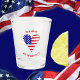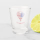 Personalised shot glass designed to share your love of all things American, a large apron with a heart-shaped flag of the red, white, and blue flag of the United States of America and a blue background. Above is a spot for your name (or someone else's, if this is a gift), below a place to write an occasion (birthday, Valentine's Day, Independence Day, etc.) and year. Enjoy your cookout or barbeque while honouring your love of your heritage. Great housewarming gift. Terrific for family reunions and friend reunions, too.