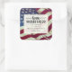 USA Flag Love Never Fails Wedding Bible Verse Square Sticker