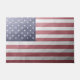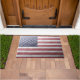 Outdoor or indoor home décor unique custom patriotic doormats. Modern cool triangle geometric mesh America 4th of July stars and stripes. Light coloured USA flag in red white and blue.
