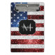 USA flag red white blue sparkles glitters Monogram Mini Clipboard