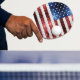 Sparkly America 4th of July white glowy stars and sparkled stripes. Vibrant USA flag in red, white and blue faux sparkles glitters. We use photo of sparkles glitter!