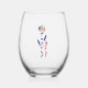 Personalised stemless wine glass, decorated with a rose with a USA Flag motif in an upright position. Add a name in red letters to make it special for yourself or a gift. Lovely housewarming gift for your patriot. Cute for family reunions, clubs, or travel groups. Terrific to use for Independence Day / 4th of July.