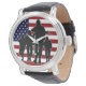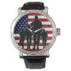 Lovely patriotic / military theme wrist watch. These watches feature an artistic illustration of an American flag with marching soldiers silhouette in front. Select from the drop down on this page your favourite style of watch and band from leather, stainless steel, two tone and glitter! Choose from the same drop down for adult or child styles! This watch will surely add some patriotic pride and support to your daily style and look! A wonderful gift for family, friends, family of a military soldier, or someone who is serving in the military or is a vet! For more patriotic cards, home decor, and gift items please visit our shop!