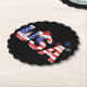 “USA” in the Stars and Stripes with icicles and crystal, a Christmas tree and a Santa hat on “USA”, and snowflakes in red, white, and blue in the background. Unique USA design for the holiday seasons.