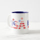 “USA” in the Stars and Stripes with icicles and crystal, a Christmas tree and a Santa hat on “USA”, and snowflakes in red, white, and blue in the background. Unique USA design for the holiday seasons.