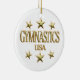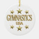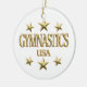 Share your support for the American Gymnastics team with a golden design with stars and the words - Gymnastics USA.