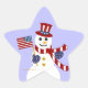 Cute USA patriotic snowman carrying a flag stickers! Available in different sticker shapes and in small and large sizes. These lovely stickers feature a unique digital art illustration of a snowman wearing a patriotic stars & striped gloves, scarf, and Uncle Sam style hat, in colours of red, white and blue! He is also carrying an American flag and is on a lovely blue snow falling background. A cheerful way to bring patriotism and support of the troops or a special military person into your winter holidays! They are perfect for your holiday mailings, for children, or a wonderful little stocking stuffer for family, friends, veteran, military person, or military family too! This design is also available on greeting cards and other great gift items too in our shop!
