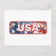 A fun postcard featuring red, white, and blue, along with "USA." Use the template to personalise. You can keep the text or change.