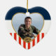 A wonderful personalised patriotic keepsake ornament that displays your patriotic love and support of country and a special person who serves it. The front of this lovely patriotic heart frame features stars and stripes, in red white and gold. It reads "Proud Daughter". The back is also decorated as a patriotic looking frame ready for you to upload your favourite photo, and add year too! You may also change the wording on the front of this ornament as well. A great addition to your ornament collection, or a gift for military family or friends. Please visit our store for more styles, designs and gift products in patriotic themes. Digital art by © 2013 XG Designs NYC.