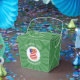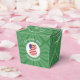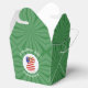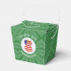 Take out favour box with a red haired angel wearing the flag of the United States of America for holiday party decorating or Christmas decor. The USA Flag Christmas angel is found inside a white, fractal circle of squiggly squares. The background is a green fractal squiggly squares. Add your own text or personalise with a name and the year.