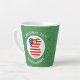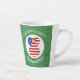Latte mug for Christmas has an angel dressed in the flag of the United States of America. This USA Flag Angel flies in the centre of a white fractal of squiggly squares set in the centre of a green fractal of squiggly squares. Add your name, or the name of someone else, if giving as a gift, to personalise. Customise by changing the ?? to a year of your choice. Designed for your Christmas decor this holiday season.